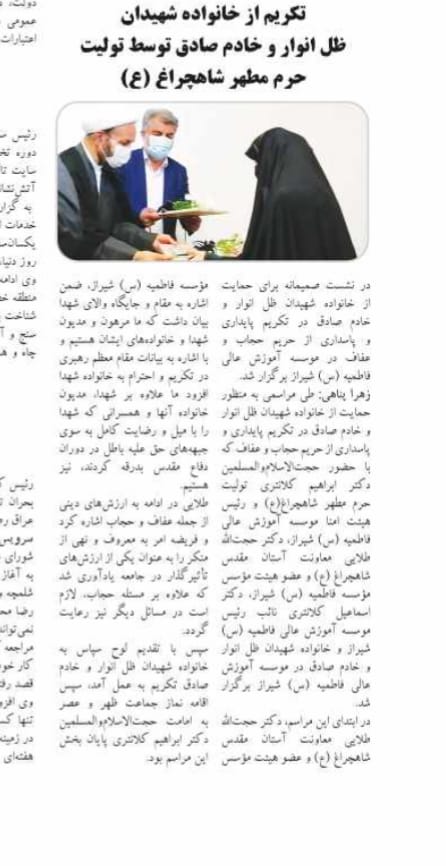 Compartir en Telegram بازتاب مؤسسه در رسانه ها کد : ۹۱۸ تکریم از خانواده شهیدان ظل انوار و خادم صادق توسط تولیت حرم مطهر شاهچراغ موسسه فاطمیه دوشنبه ۱۴۰۱/۰۶/۱۴ | ۲۱:۲۰ ۱۶۶۴ بازدید telegram eitaa sorous wa تکریم از خانواده شهیدان ظل انوار و خادم صادق توسط تولیت حرم مطهر شاهچراغ نظر شما ارسال