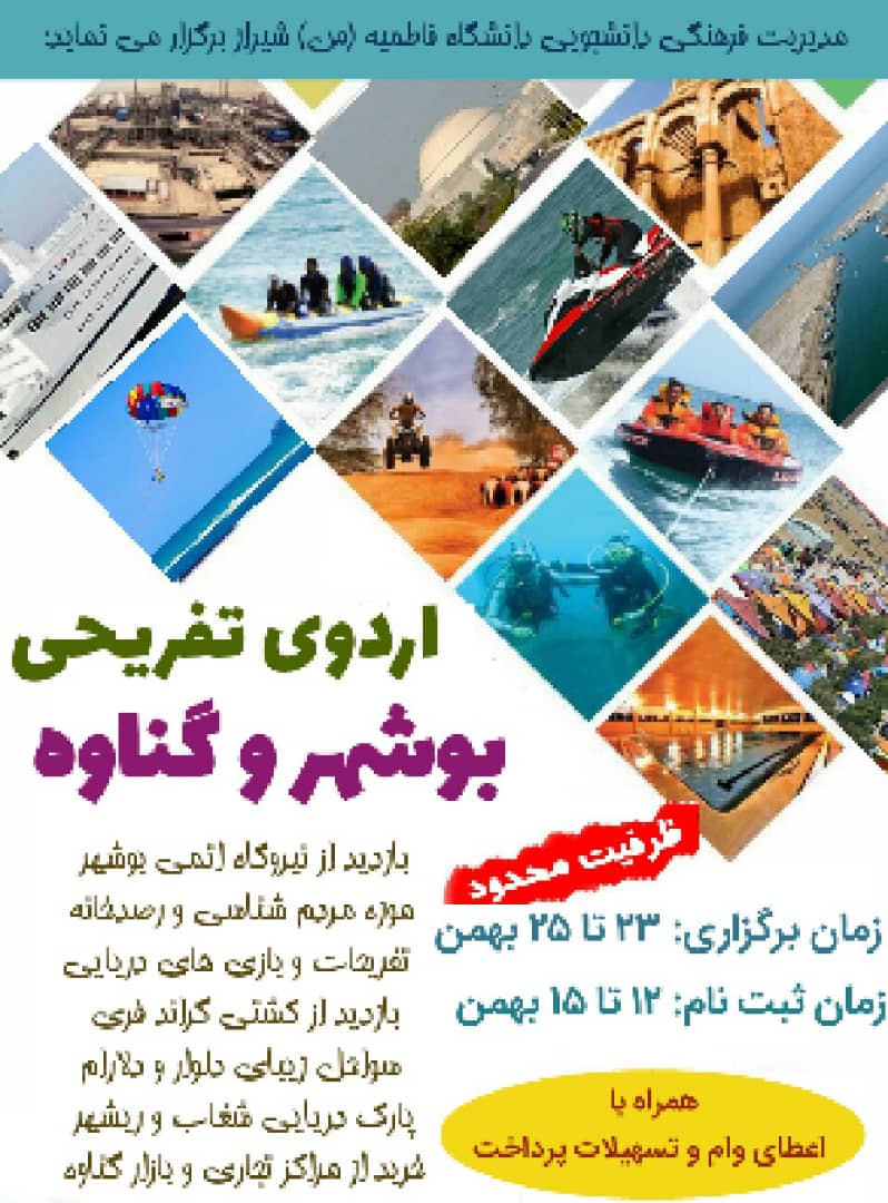 اطلاعیه اردوی تفریحی بوشهر و گناوه