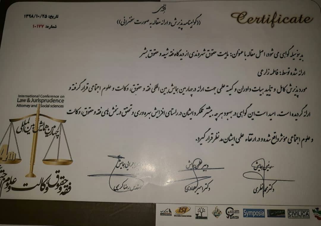 پذیرش دو مقاله پژوهشی مدیر محترم گروه حقوق، سرکار خانم دکتر زارعی