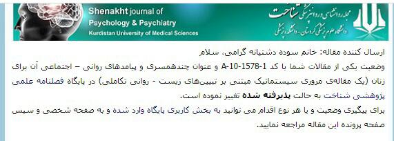 پذیرش مقاله علمی پژوهشی به نویسندگی سرکار خانم سوده دشتیانه و خانم شیوا زارع به سرپرستی دکتر کاظم خرم دل