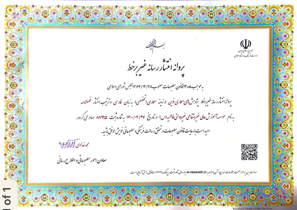 صدور پروانه انتشار رسانه غیر برخط «پژوهشهای معماری نوین» به صاحب امتیازی موسسه آموزش عالی فاطمیه شیراز