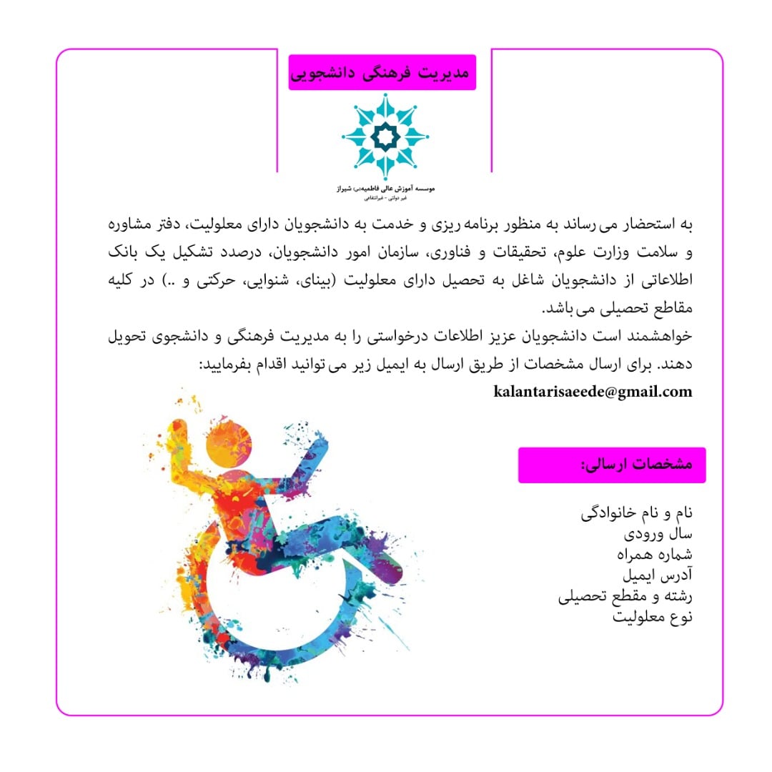 اطلاعیه در خصوص دانشجویان دارای معلولیت