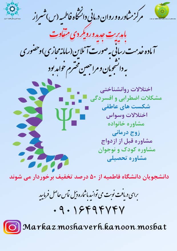 مرکز مشاوره و روان درمانی موسسه آموزش عالی فاطمیه (س) شیراز آماده خدمت رسانی است