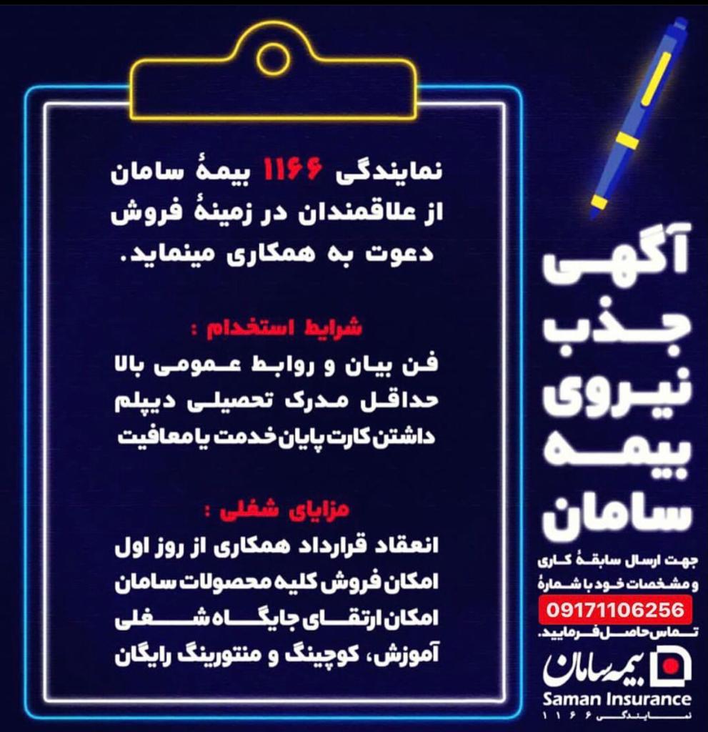 دعوت به همکاری بیمه سامان، فرصت شغلی ویژه