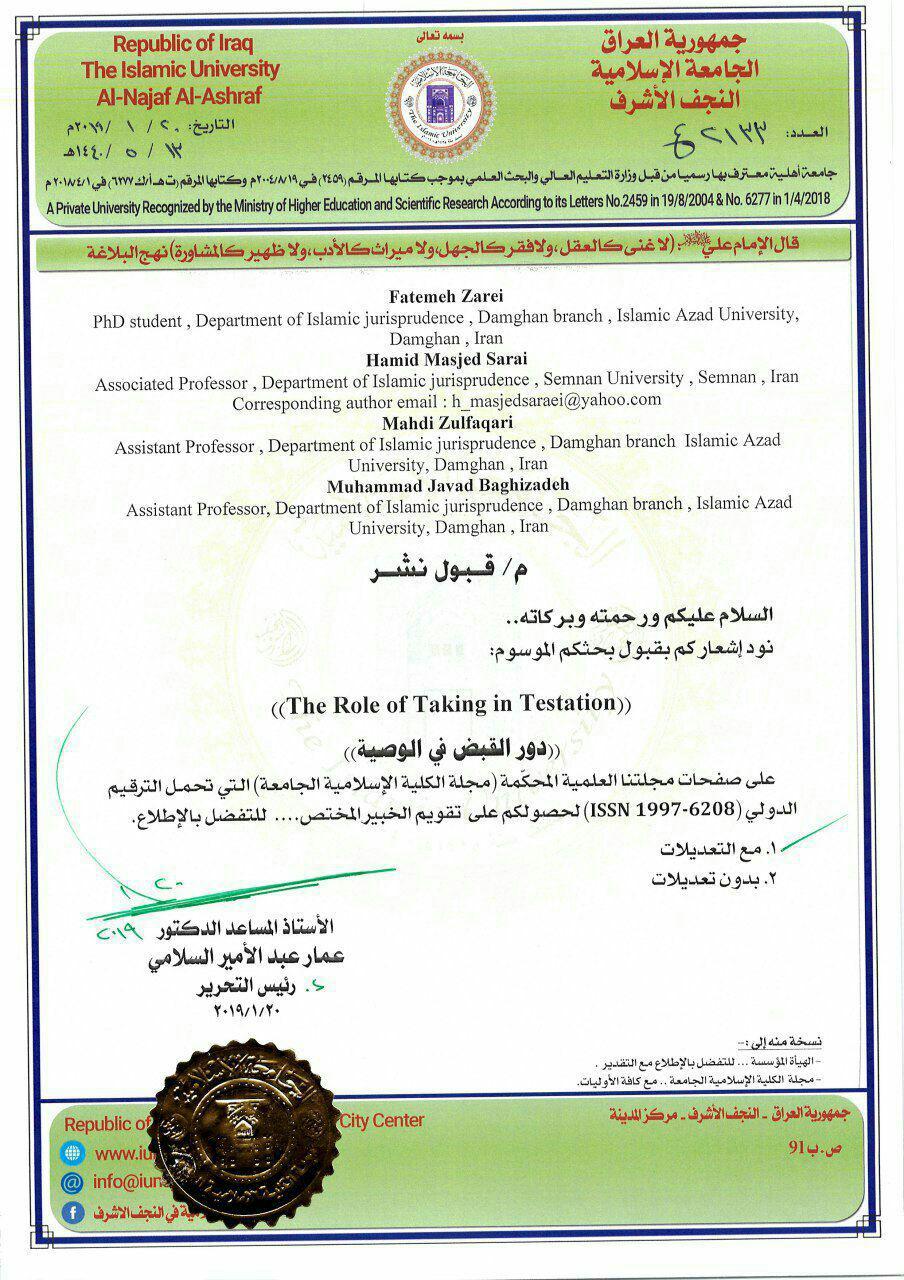 پذیرش مقاله علمی گروه حقوق در یک ژورنال بینالمللی