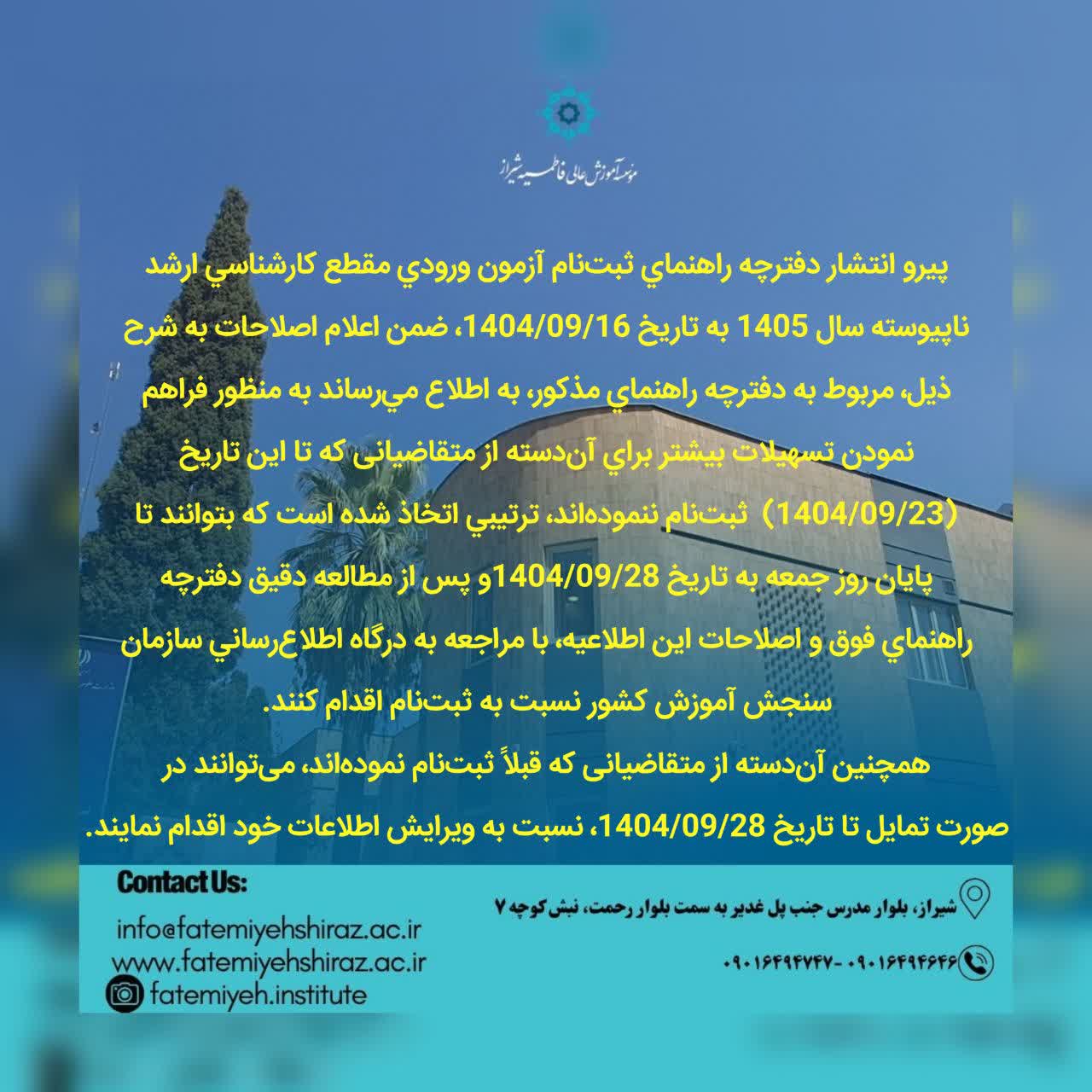 اطلاعیه ثبت نام کارشناسی ارشد