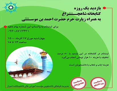 بازدید از کتابخانه شاهچراغ ع به همراه زیارت از حرم حضورت احمد بن موسی ع