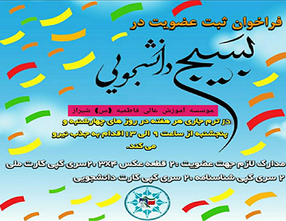 فراخوان ثبت عضویت در تشکل بسیج دانشجویی موسسه آموزش عالی فاطمیه (س) شیراز