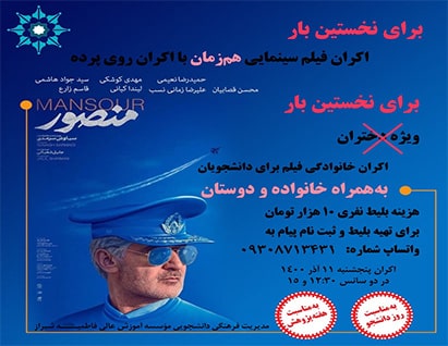 اکران فیلم سینمایی منصور همزمان با اکران روی پرده به مناسبت روز دانشجو و هفته پژوهش