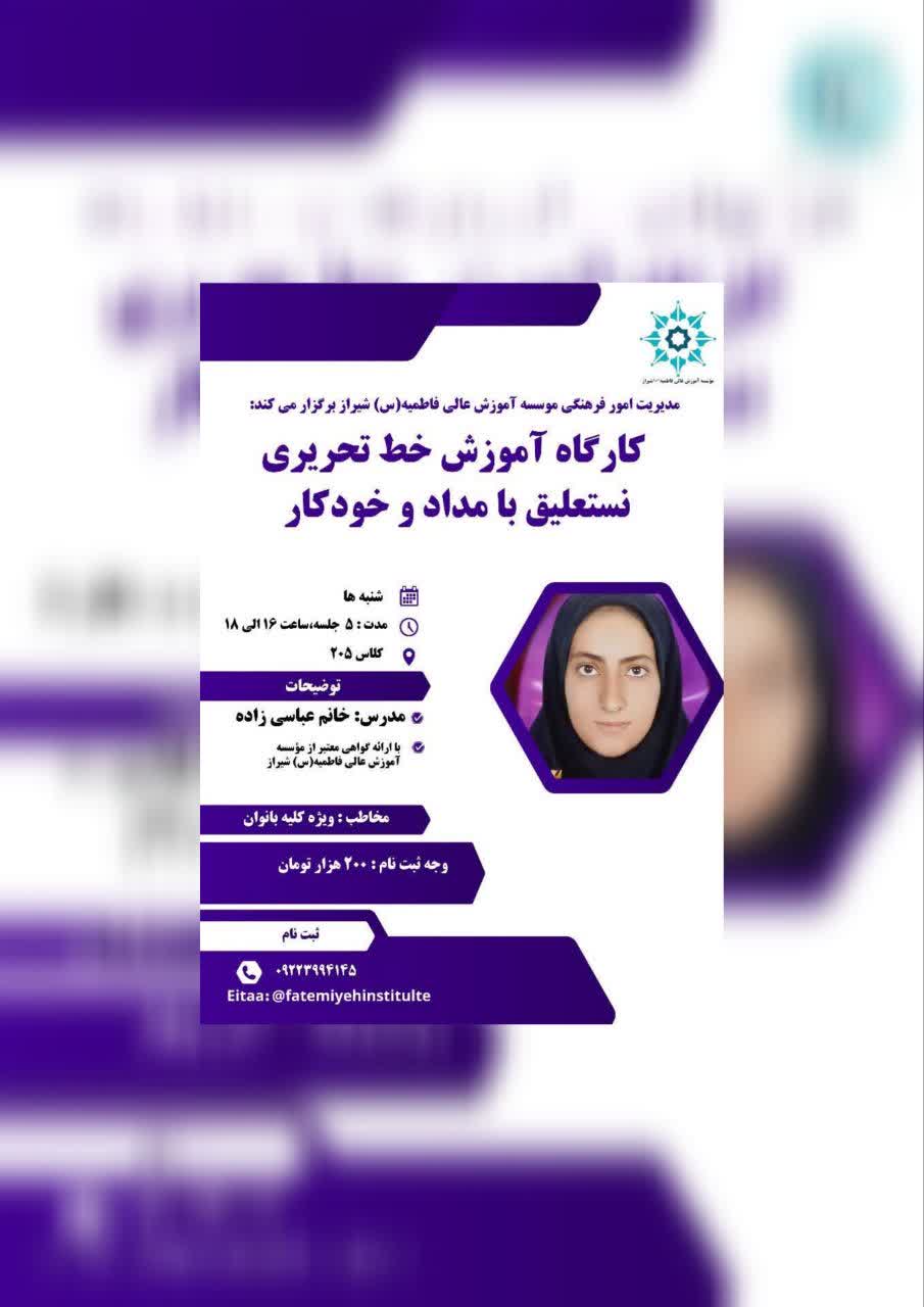 کارگاه آموزش خط تحریری نستعلیق با مداد و خودکار